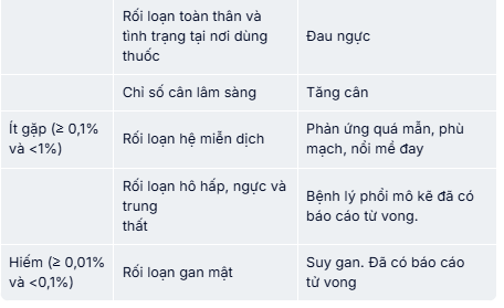 Bảng 1: Tần suất tác dụng ngoại ý