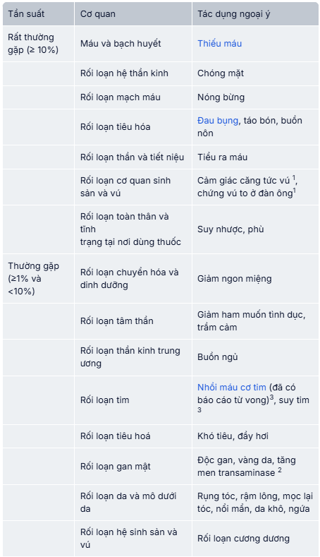 - 1: Có thể giảm khi phối hợp với phẫu thuật cắt bỏ tinh hoàn.