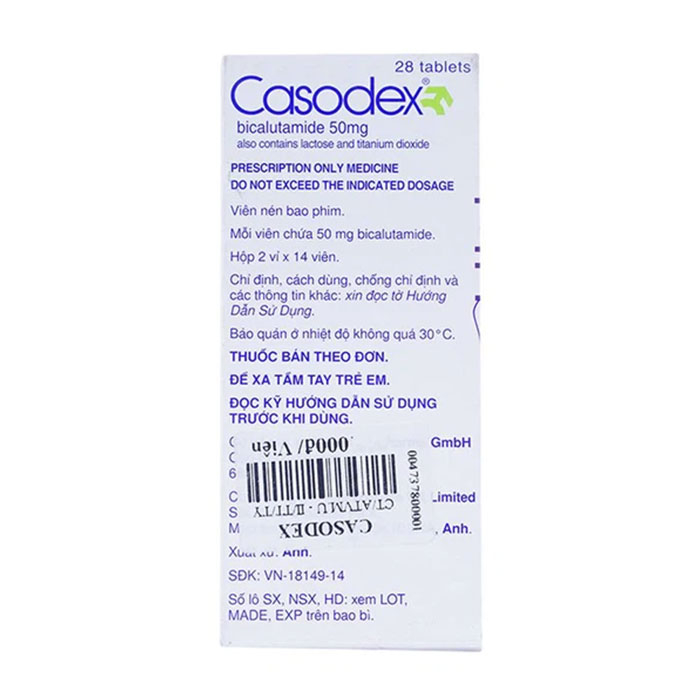 - 3: Ghi nhận từ nghiên cứu dịch tể dược về các chất chủ vận LHRH và kháng androgen được sử dụng trong điều trị ung thư tiền liệt tuyến. Nguy cơ gia tăng khi dùng CASODEX 50 mg kết hợp với chất chủ vận LHRH nhưng không tăng nguy cơ khi dùng CCasodex 50mg đơn trị liệu điều trị ung thư tiền liệt tuyến.
