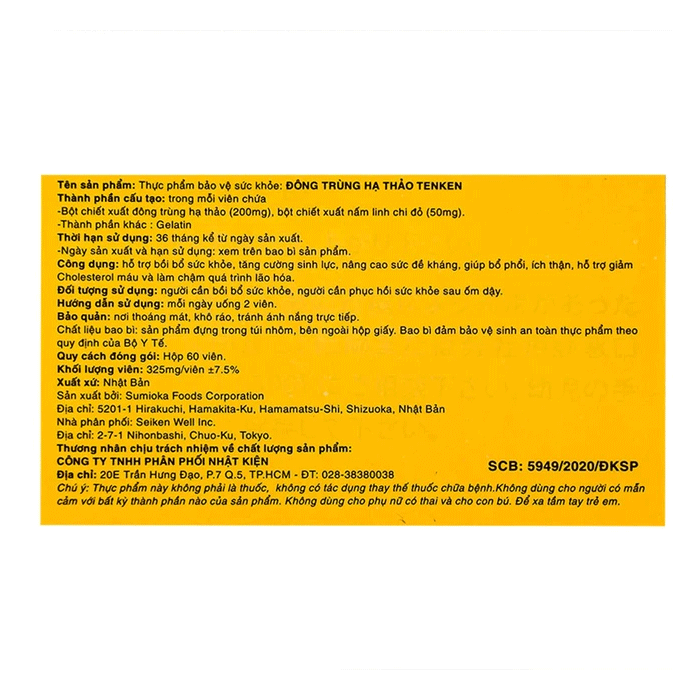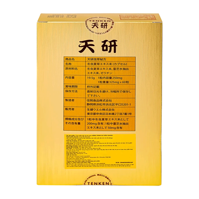 Đông Trùng Hạ Thảo Tenken được sản xuất tại Nhật Bản, phát triển bởi sự hợp tác giữa Viện nghiên cứu họ Nấm thuộc Công ty Seiken Well Inc và Nikkei Co.