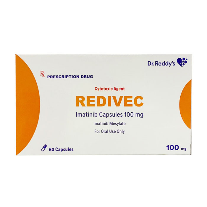 Thuốc Redivec 100mg Dr.Reddy's có thành phần là hoạt chất Imatinib được chỉ định trong điều trị bệnh bạch cầu tủy mạn (CML) mới được chẩn đoán dương tính với nhiễm sắc thể Philadelphia (Ph+), không xem xét với bệnh nhân đang điều trị cấy ghép tủy.