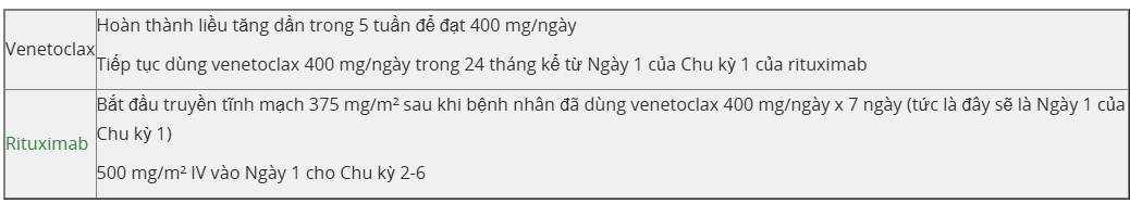 Liều dùng khuyến cáo chỉ định điều trị bệnh bạch cầu lymphocytic mãn tính hoặc u lympho lymphocytic nhỏ, trong những liệu pháp cụ thể gồm: